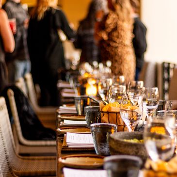 Chef Justin offers between 3 - 12 courses plated for up to 22 guests. Every menu is custom. If you need, we have all of the plates and flatware that you will need. We also work with several bar-tending companies if you wish to make it a wine pairing event. Call us and let's start planning!